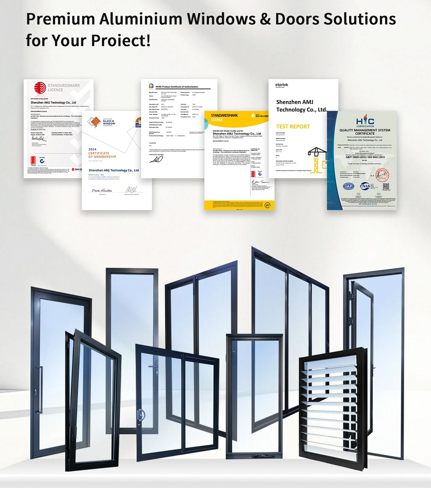 Owning factories in Guangdong China and branches in major Australian cities,AMJ is a specialist in Aluminium Windows & Doors,with a vast product line including Awning,Sliding,Casement,Tilt&Turn,Bi-folds,Double Hung,and Sashless...to suit all energy requirement & security needs.Choosing from one of our systems,or AMJ can customize, extrude,and test all in-house.